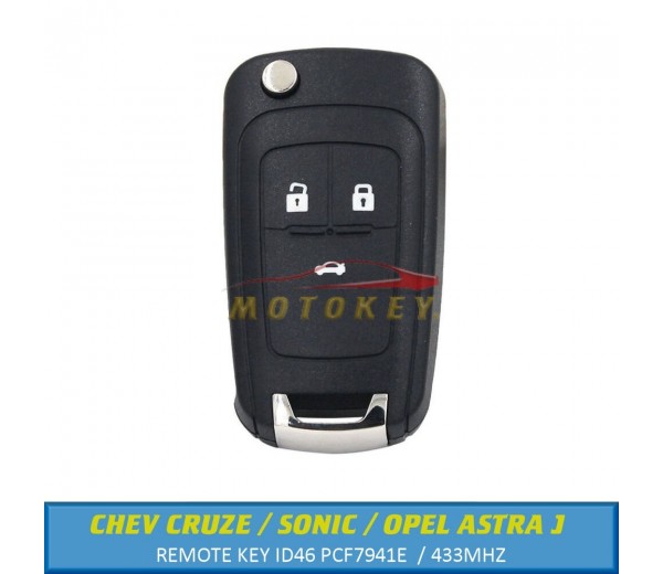 Chevrolet Cruze / Sonic / Astra J 3 Button Flip Key 433MHZ / ID46