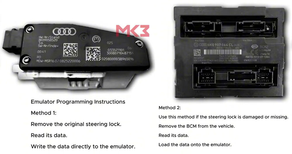 VW Audi Porsche 2008+ Steering Lock Emulator requires programming in order to function as a replacement for the damaged steering lock.