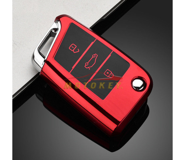 TPU Cover for VW Golf 7 Polo Tsi Smart Key 3 Button - Red