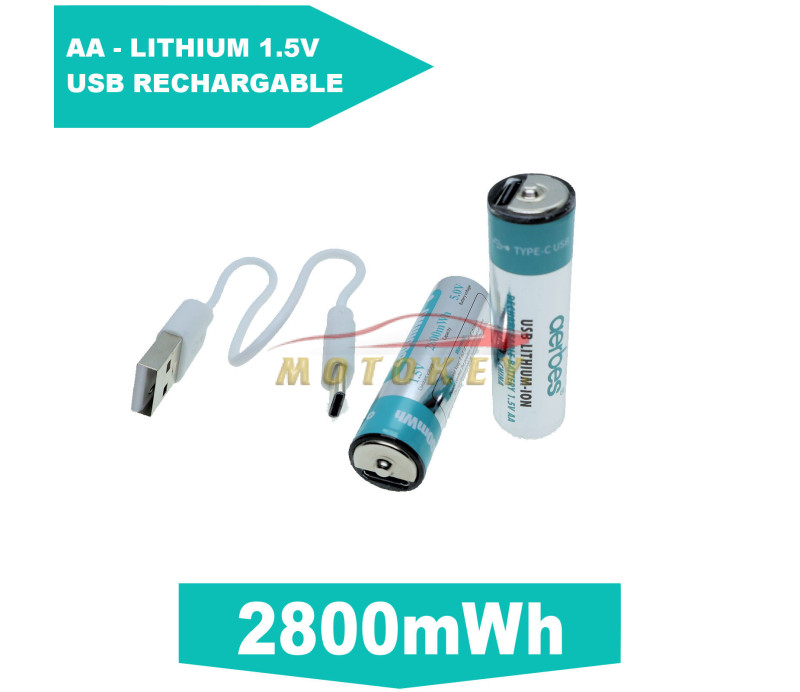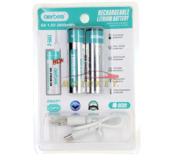 Aerbes AA 1.5v Lithium USB Rechargeable Battery - 2 Pack