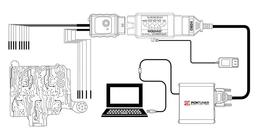 1.Connect GODIAG GT107 Adapter to PCMtuner