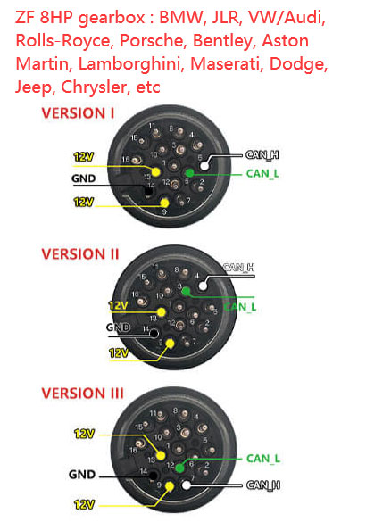 GT107 ZF8HP Gearbox Pinouts