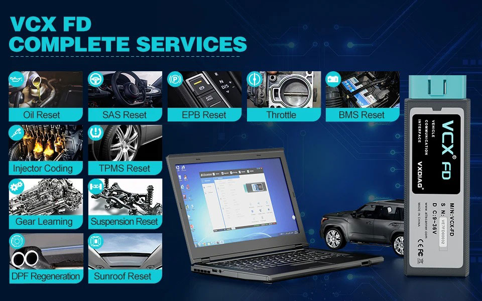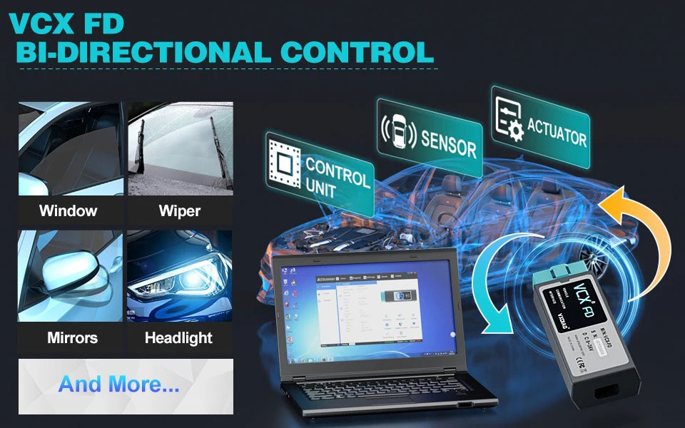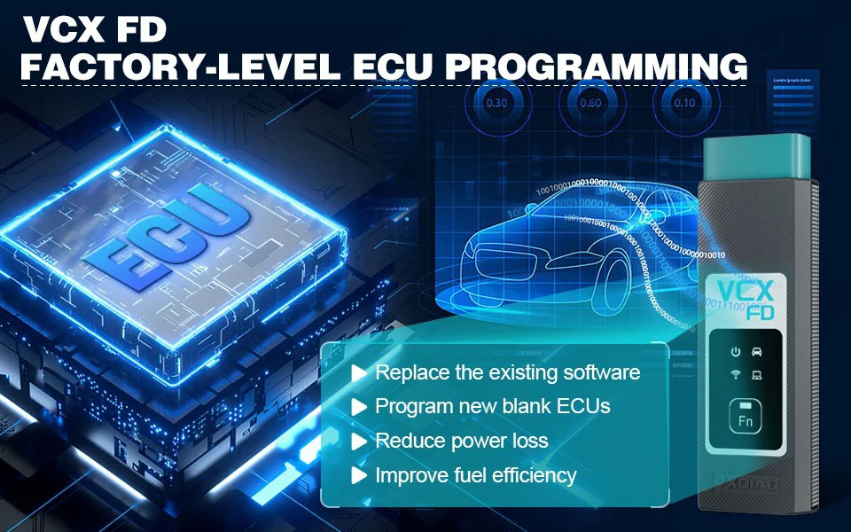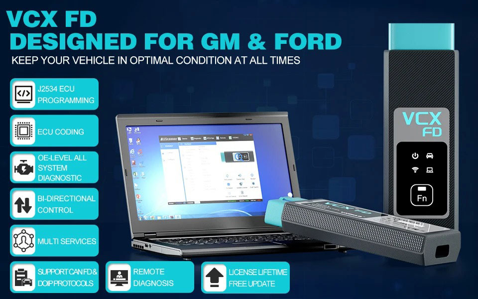 VCX FD can perform many advanced features with OEM software, such as refresh hidden functions, disable the annoying functions, enhance vehicle performance, customize OE-settings, reprograms the adaptive data for certain components after repairs or replacements, customized configurations for high-end models and so on to enhance fuel efficiency and ensure safe driving.