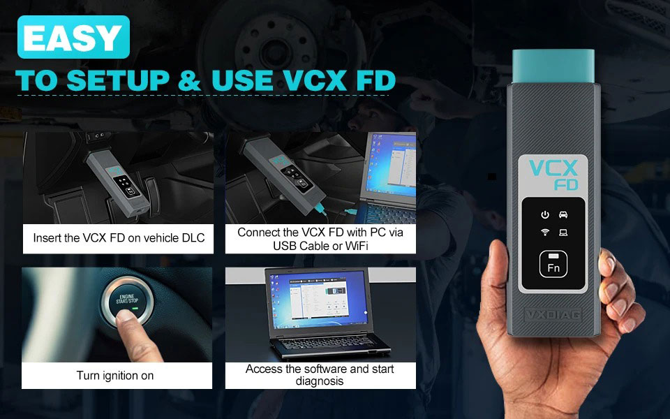 Work with PC, VCX FD is fully compliant with SAE J2534-1 & J2534-2 standards, supporting major OEM diagnostic tools, it speeds up reprogramming and diagnostics, saving time and boosting efficiency.