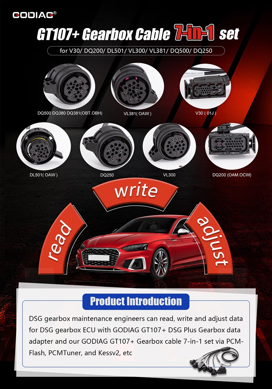 4. Can also connect to our GODIAG GT107+ DSG Plus Gearbox Data Adapter for automatic and manual PCMflash reading/writing.